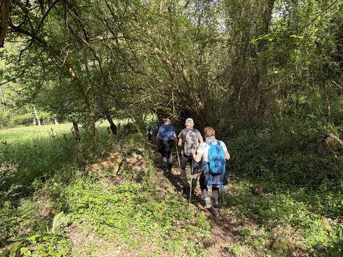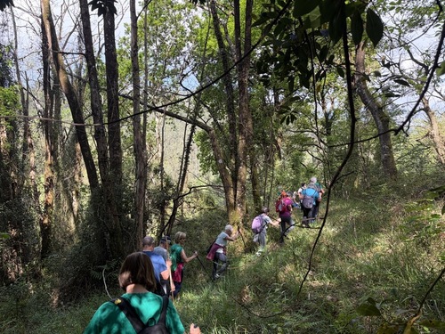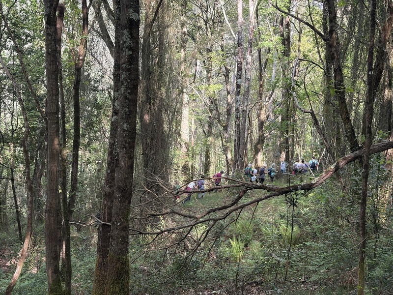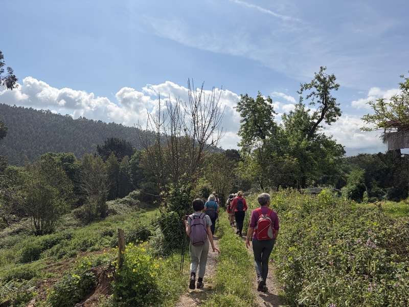 Tomando rumbo hacia Picaroso, a mitad de recorrido, el grupo giró a la izquierda para descender por el monte hasta el río Pato. Desde allí, pasando por Rozadas y ya en dirección a Grao, se completó el itinerario.