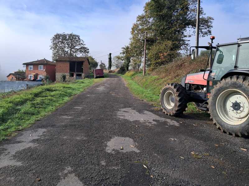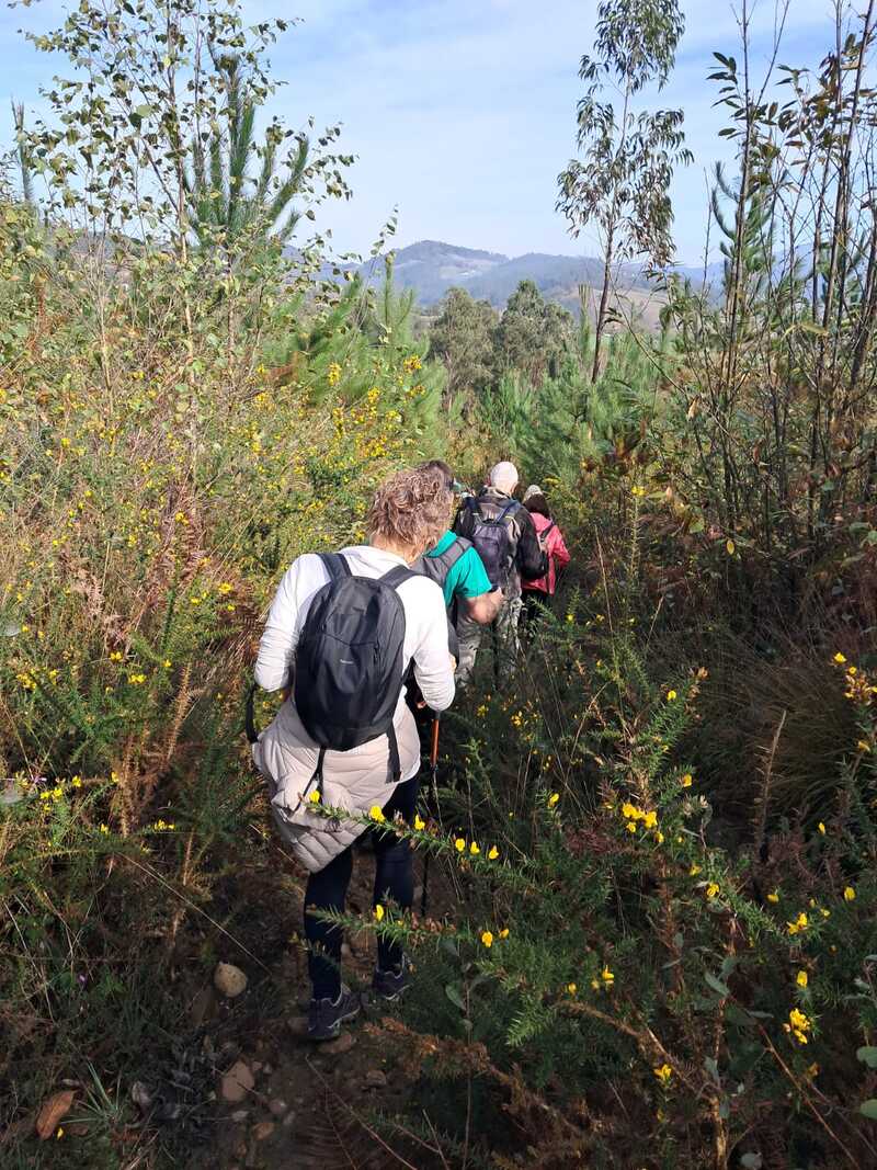 A continuación iniciamos la subida por una pista utilizada antiguamente para la saca de madera, en dirección al Xorro. Antes de alcanzarlo, nos desviamos a la izquierda y, tras atravesar una zona que parecía ser un vivero de cotoyas, enlazamos con una pista más amplia que nos condujo de nuevo hacia la carretera de acceso a Acebeo.