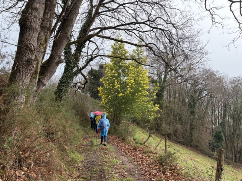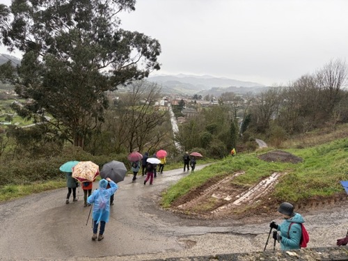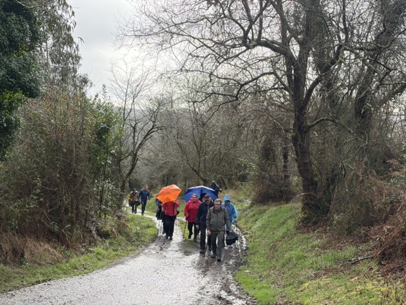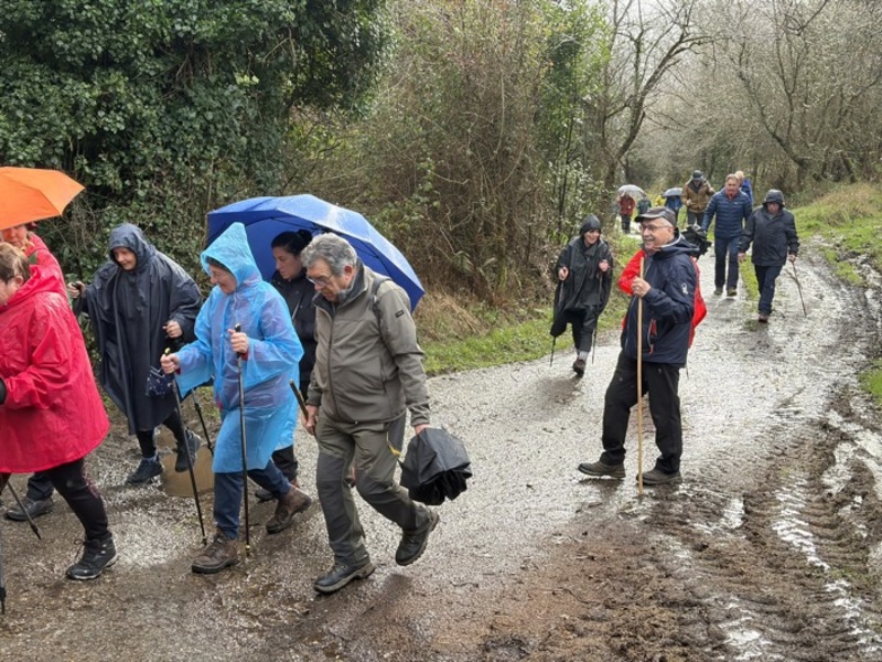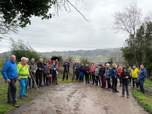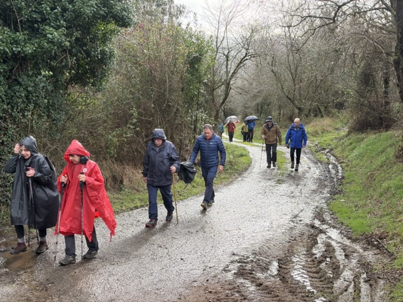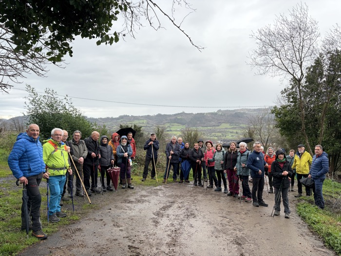 Un total de 33 personas participaron en esta jornada en la que el tiempo no acompañó. La lluvia estuvo presente durante buena parte del recorrido, en algunos momentos con bastante intensidad, aunque no lo suficiente como para desanimar al grupo.